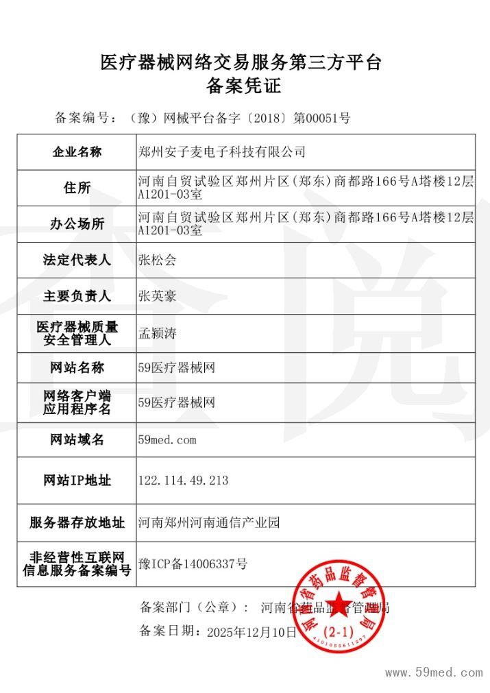 互联网药品信息服务许可资格证书:(豫)-经营性-2019-0004 (豫)网械平台备字(2018)第00051号