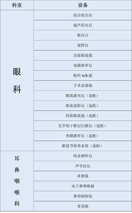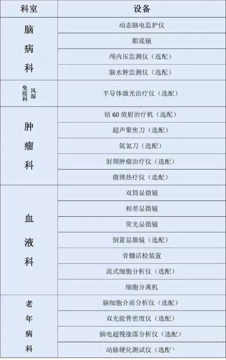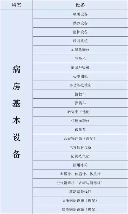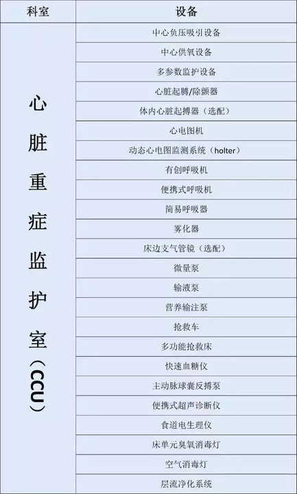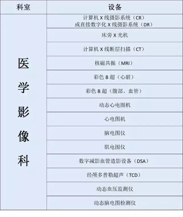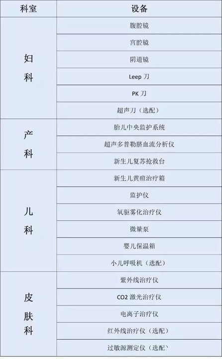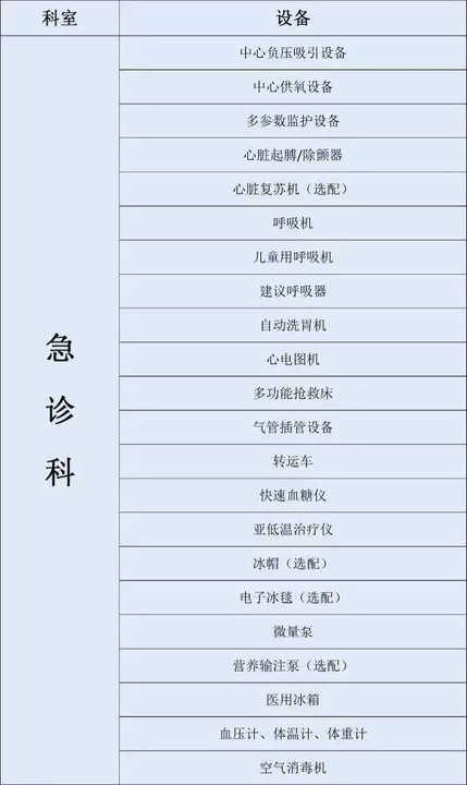 大型三甲医院各科室设备大起底(附表)