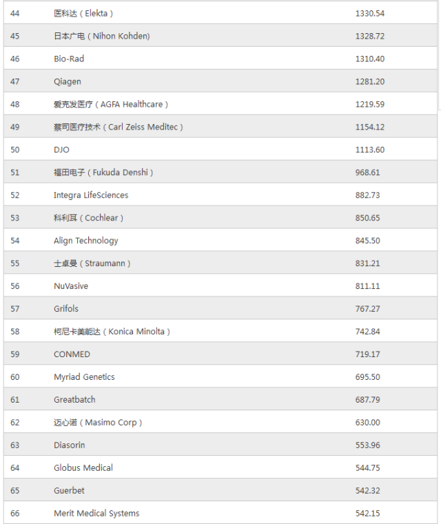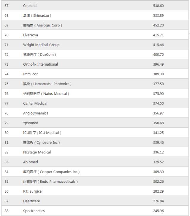 MTI100全球医疗器械公司TOP10