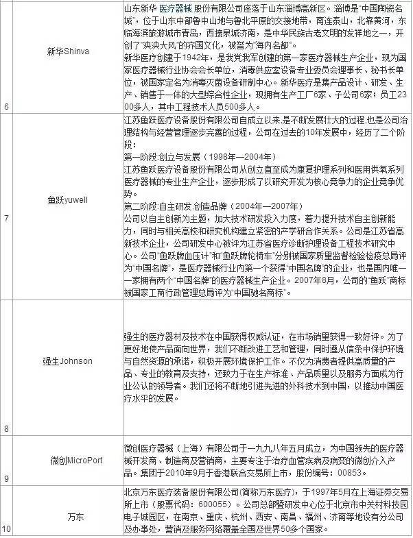 中国医疗器械十大品牌企业排行榜如下: