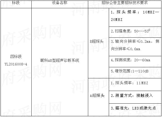 本招标采购项目为南阳市眼科医院2016年医疗设备四标段二次采购项目 ,已经有关部门批准采购,采购人为南阳市眼科医院,招标代理机构为河南鑫汇招标代理有限公司,资金来源为自筹资金。该项目已具备招标条件,现对本项目进行国内公开招标,凡具备条件的潜在投标人均可报名参加。