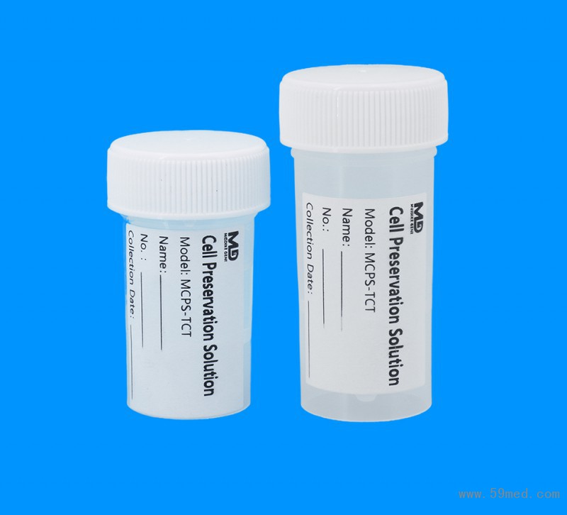产品说明:适用于TCT液基细胞筛查的标本保存、运送,用于TCT液基薄层细胞检测方法中的宫颈脱落细胞的保存、运输。可以起到固定细胞,防止细胞聚集,分散黏液,去除红细胞,维持pH值和离子强度,防止细胞变形,常温保存等作用。