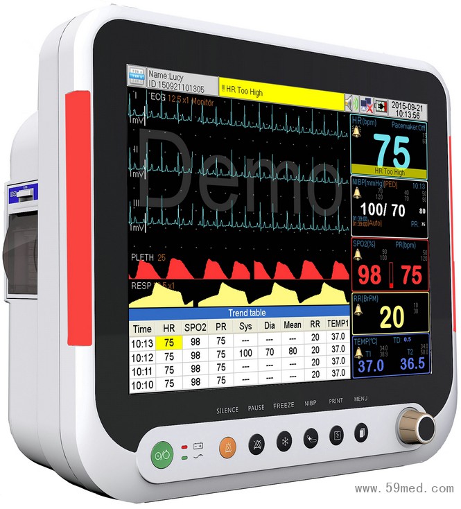 拥有优异的软件处理技术,包括13种心律失常分析、起搏分析、S-T段分析、呼吸氧合图、21种药物浓度计算